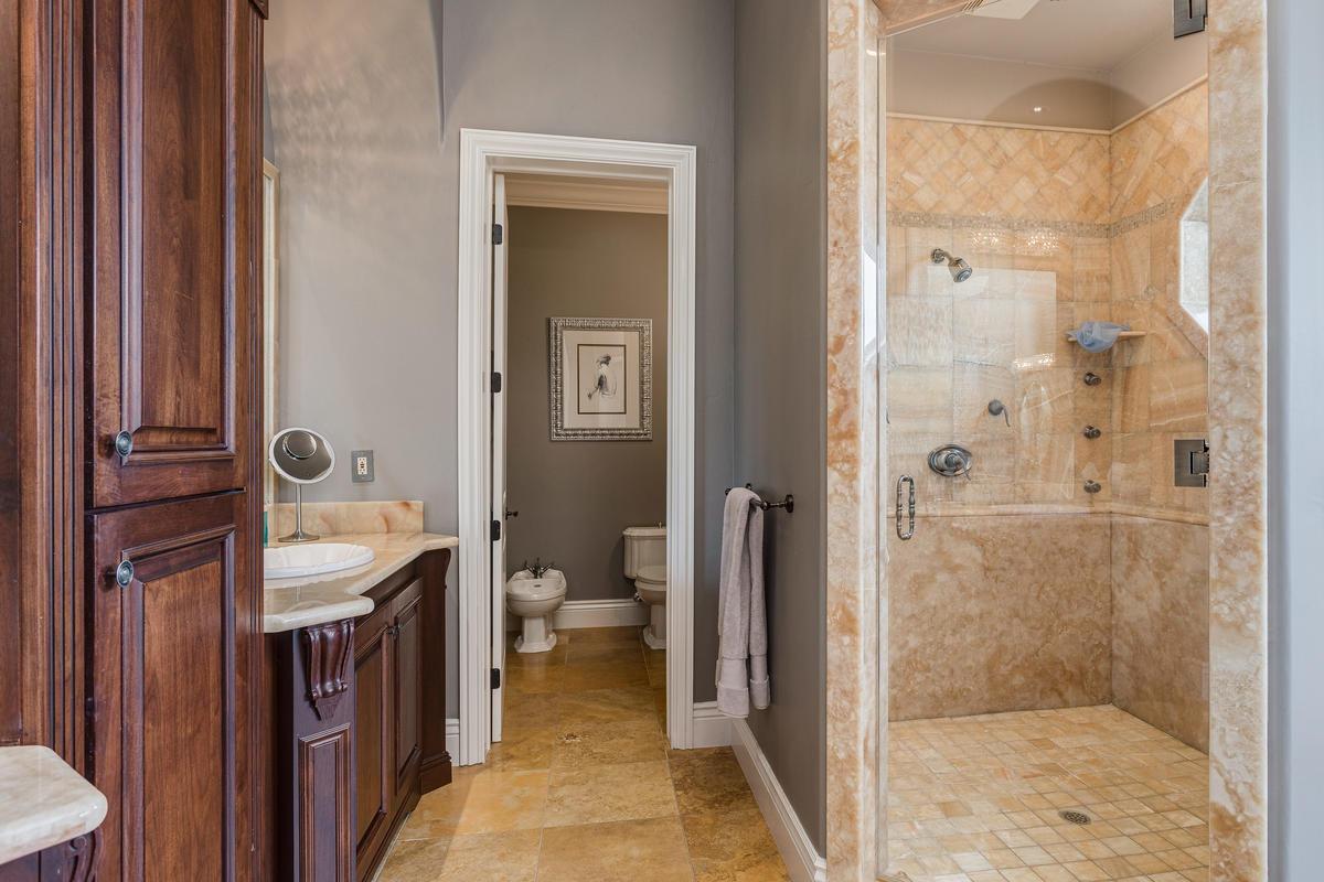 Exquisite new construction single story home. 4 bedrooms with en-suite bathrooms and walk-in closets, private office, gourmet kitchen, butler's pantry, roomy breakfast area, 3 fireplaces, wine rm 500+, spacious covered patio.